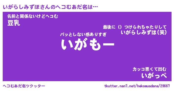 | 男性向けラノベタイトル風あだ名 | 『イガラシミズホアートオンライン』 |