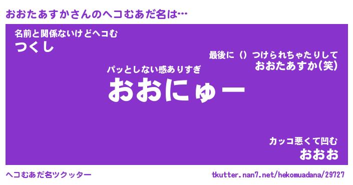 | 男性向けラノベタイトル風あだ名 | 『オオタアスカアートオンライン』 |
