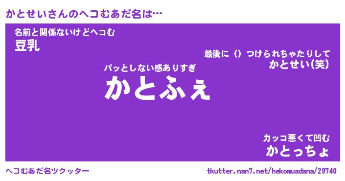 | 意味不明あだ名 | 『ペロリンかとせい』『永久保存かとせい』 |