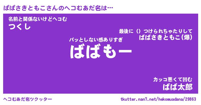 | 欧米人風あだ名 | 『マイケルばばさきともこ』 |