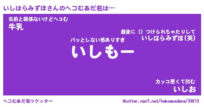 | ヒーロー風カッコイイあだ名 | 『スーパーイシハラミズホ』 |