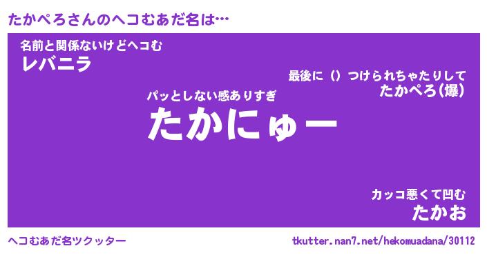 | ファンタジー風あだ名 | 『タカフェル』『エターナルタカペロー』 |