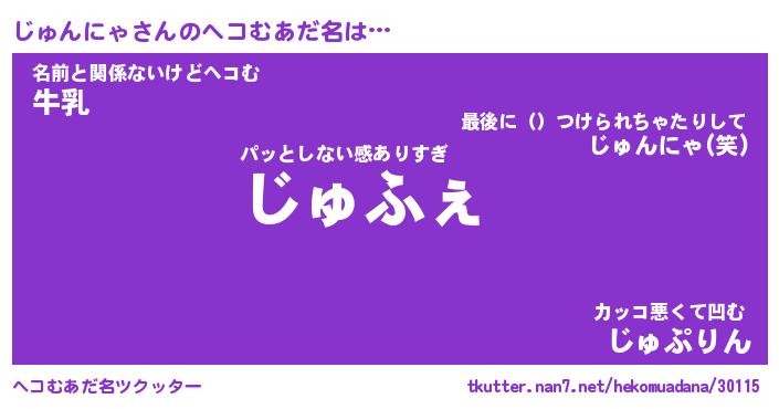 | ファンタジー風あだ名 | 『ジュフェル』『エターナルジュンニャー』 |