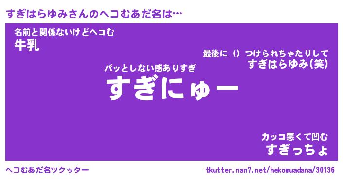 | ポケモン風あだ名 | 『スギチュウ』『スギハダネ』 |