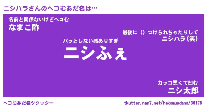 | ポケモン風あだ名 | 『ニシチュウ』『ニシハダネ』 |