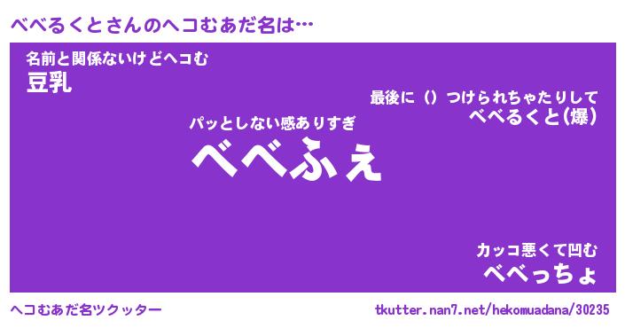 | 意味不明あだ名 | 『ペロリンべべるくと』 |