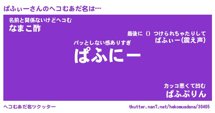 | 意味不明あだ名 | 『ペロリンぱふぃー』『永久保存ぱふぃー』 |