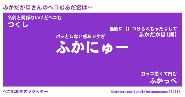 | ポケモン風あだ名 | 『フカチュウ』『フカダダネ』 |