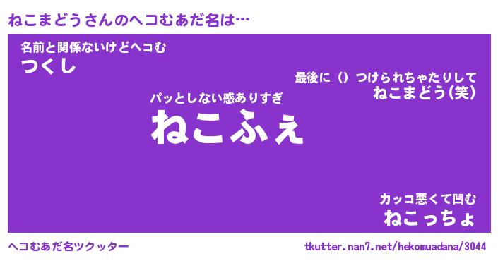 | ファンタジー風あだ名 | 『ネコフェル』『エターナルネコマドウー』 |