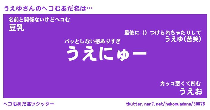 | 男性向けラノベタイトル風あだ名 | 『うえゆの憂鬱』 |