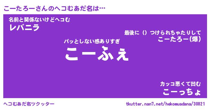 | ファンタジー風あだ名 | 『コーフェル』『エターナルコータローー』 |