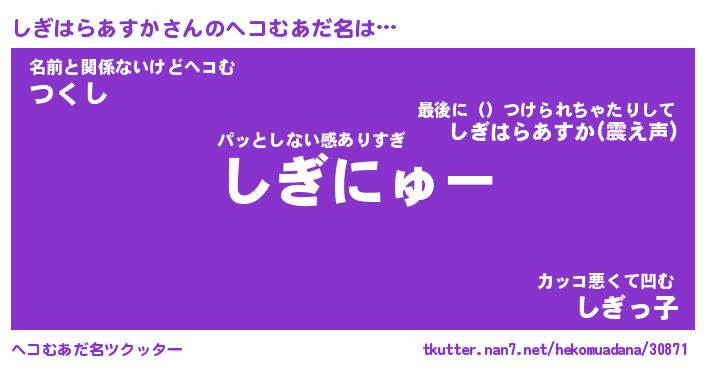 | 意味不明あだ名 | 『ペロリンしぎはらあすか』 |