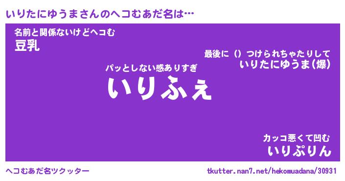 | ヒーロー風カッコイイあだ名 | 『スーパーイリタニユウマ』 |