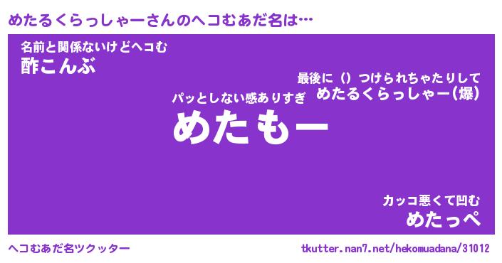 | 2回繰り返すあだ名 | 『めためた』『めめたた』『おたおた』 |