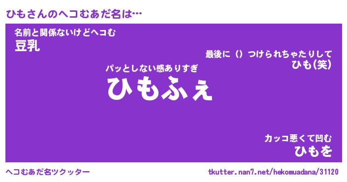 | ポケモン風あだ名 | 『ヒモチュウ』『ヒモダネ』『ヒヒモ』 |
