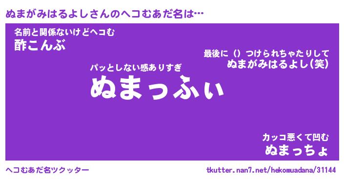 | 2回繰り返すあだ名 | 『ぬまぬま』『ぬぬまま』『ぬめぬめ』 |