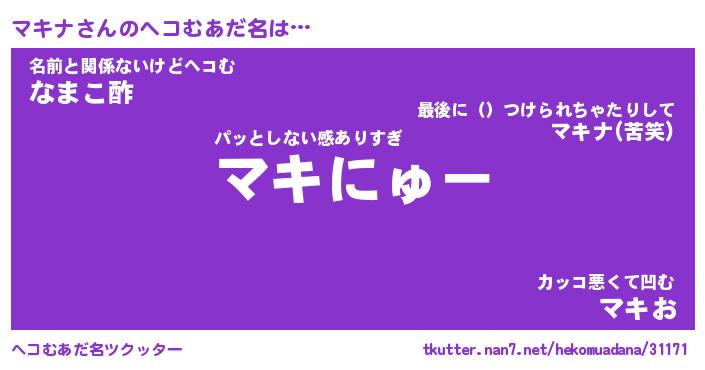 | ポケモン風あだ名 | 『マキチュウ』『マキナダネ』 |