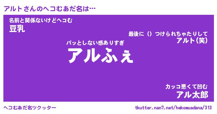 | 意味不明あだ名 | 『ペロリンアルト』『アルトフォーエバー』 |