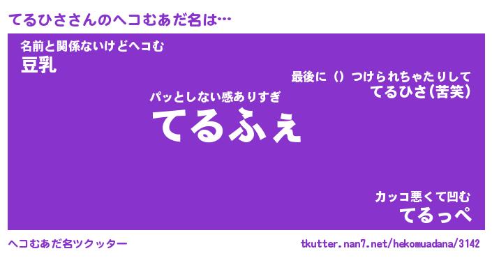 | 意味不明あだ名 | 『ペロリンてるひさ』『永久保存てるひさ』 |