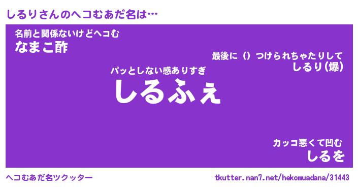 | 2回繰り返すあだ名 | 『しるしる』『ししるる』『なあなあ』 |