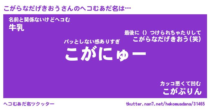 | 恥ずかしいあだ名 | 『プリティーこがらなだげきおう』 |