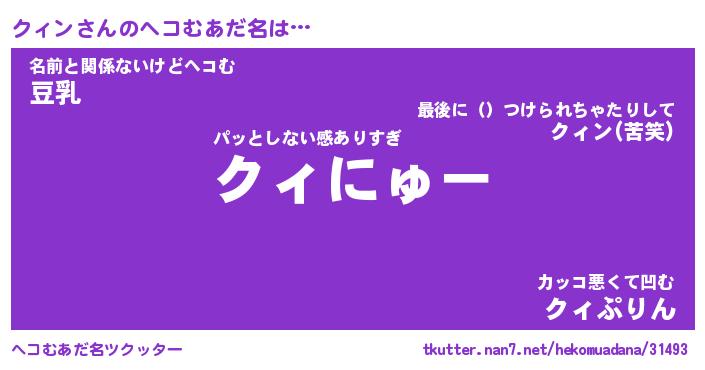 | ポケモン風あだ名 | 『クィチュウ』『クィンダネ』 |