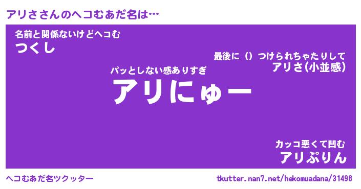 | ポケモン風あだ名 | 『アリチュウ』『アリサダネ』 |