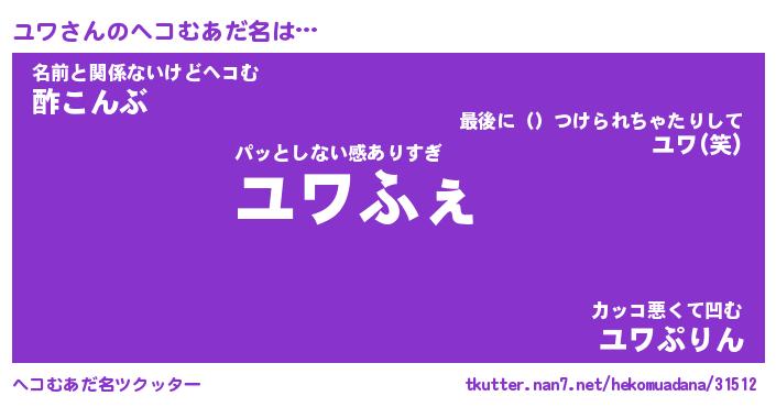| ポケモン風あだ名 | 『ユワチュウ』『ユワダネ』『ヒユワ』 |