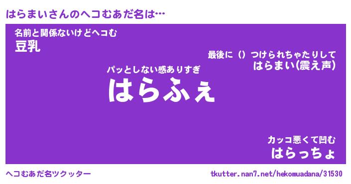 ファンタジー風あだ名 | 『ハラフェル』『エターナルハラマイー』 |