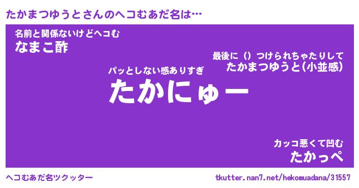 | 恥ずかしいあだ名 | 『プリティーたかまつゆうと』『たかちん』 |