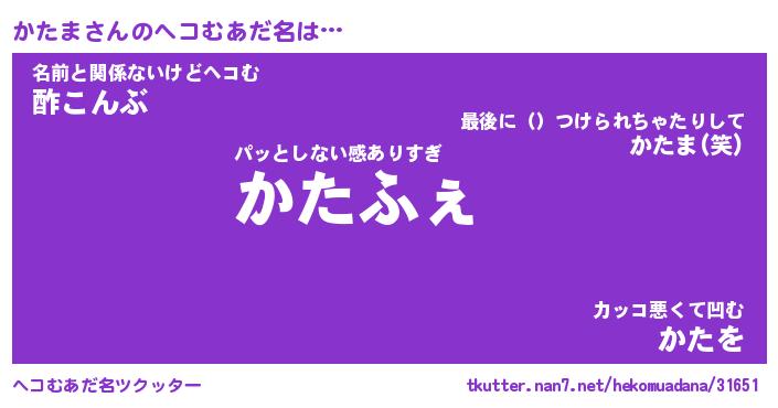 | 男性向けラノベタイトル風あだ名 | 『かたまの憂鬱』 |