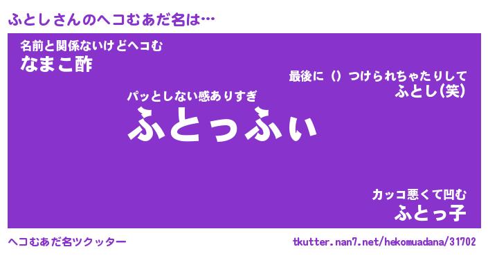 | ピコ太郎風あだ名 | 『フコ六郎』『ピフ四郎』『フト史郎』 |