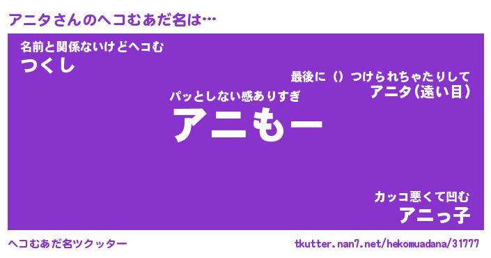 | ポケモン風あだ名 | 『アニチュウ』『アニタダネ』 |