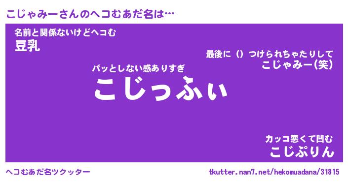 | 胡散臭い通販商品みたいなあだ名 | 『億万長者になれる霊験あらたかなお札…その名も「こじゃみー」』 |