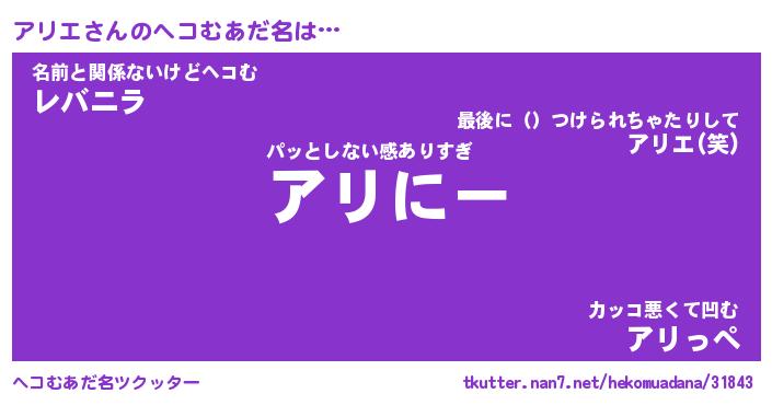 | ファンタジー風あだ名 | 『アリフェル』『エターナルアリエー』 |