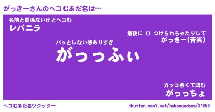 | 意味不明あだ名 | 『ペロリンがっきー』『永久保存がっきー』 |