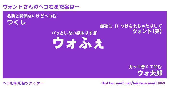 | 意味不明あだ名 | 『ペロリンウォント』『永久保存ウォント』 |