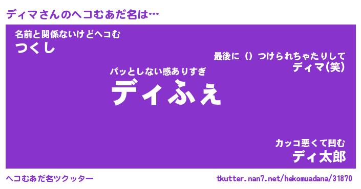 | ヒーロー風カッコイイあだ名 | 『スーパーディマ』『ウルトラディママン』 |