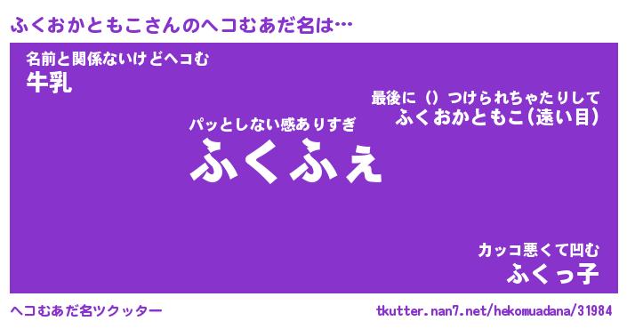| 欧米人風あだ名 | 『マイケルふくおかともこ』 |