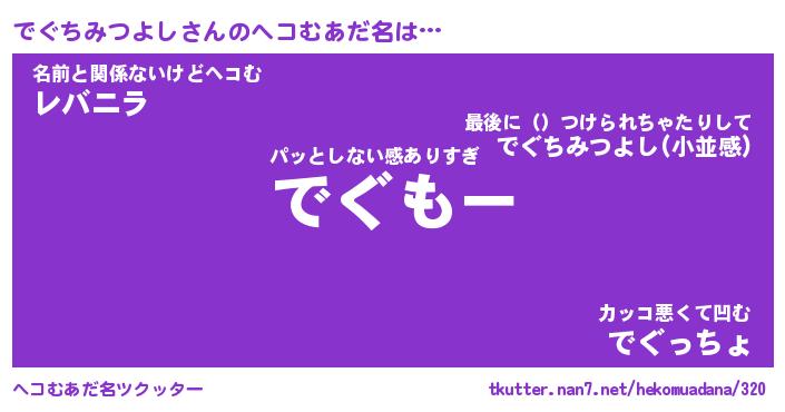 | 胡散臭い通販商品みたいなあだ名 | 『モテモテ間違いなし霊験あらたかなお札…その名も「でぐちみつよし」』 |