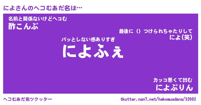 | ポケモン風あだ名 | 『ニヨチュウ』『ニヨダネ』『ヒニヨ』 |