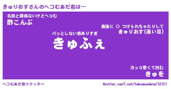 | ファンタジー風あだ名 | 『キュフェル』『エターナルキュリオスー』 |