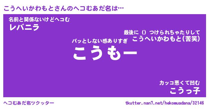 | 意味不明あだ名 | 『ペロリンこうへいかわもと』 |