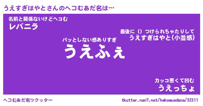 | ポケモン風あだ名 | 『ウエチュウ』『ウエスダネ』 |