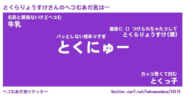 | 男性向けラノベタイトル風あだ名 | 『とくらりょうすけの憂鬱』 |