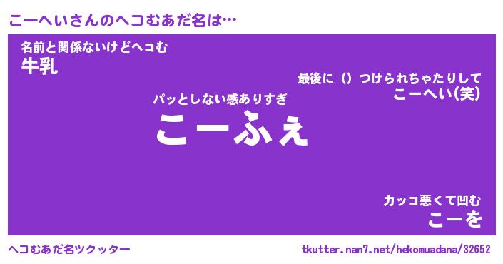 | 意味不明あだ名 | 『ペロリンこーへい』『永久保存こーへい』 |