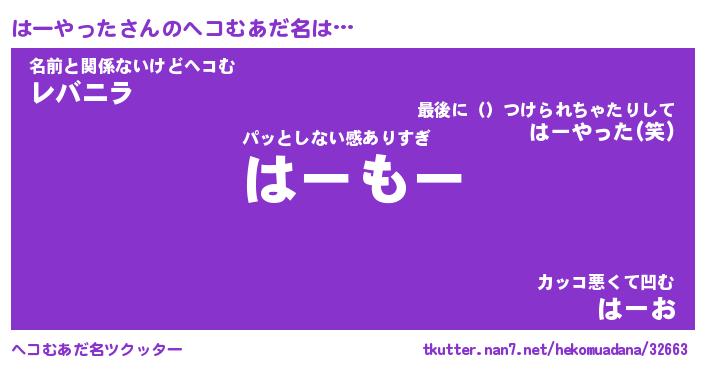 | 2回繰り返すあだ名 | 『はーはー』『ははーー』『うろうろ』 |