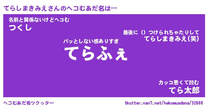 | 恥ずかしいあだ名 | 『プリティーてらしまきみえ』『てらちん』 |