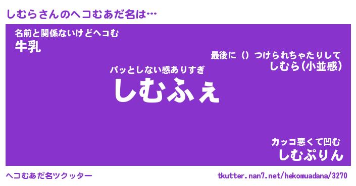 | 意味不明あだ名 | 『ペロリンしむら』『しむらフォーエバー』 |