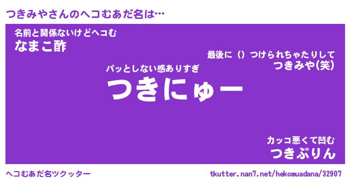 | 意味不明あだ名 | 『ペロリンつきみや』『永久保存つきみや』 |
